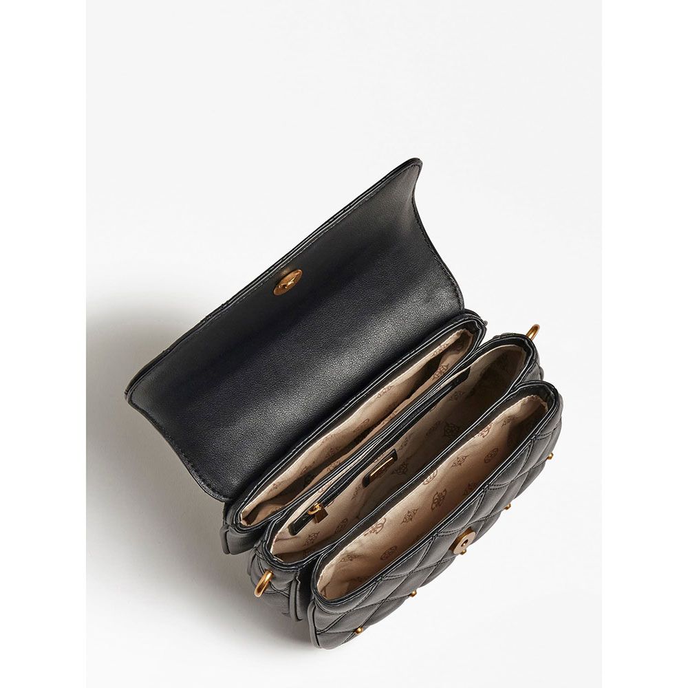 Elegant Quilt designed handbag . Top handle. Multiple compartments. Guess name Logo. Comes with charms and embelishments to make it look extremely attractive. Perfect to be carried at work & parties.
